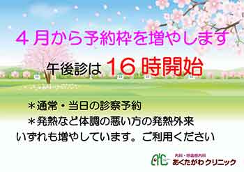 ご不明点等ございましたら、当院までお問合せください。- 4月からの診療体制について